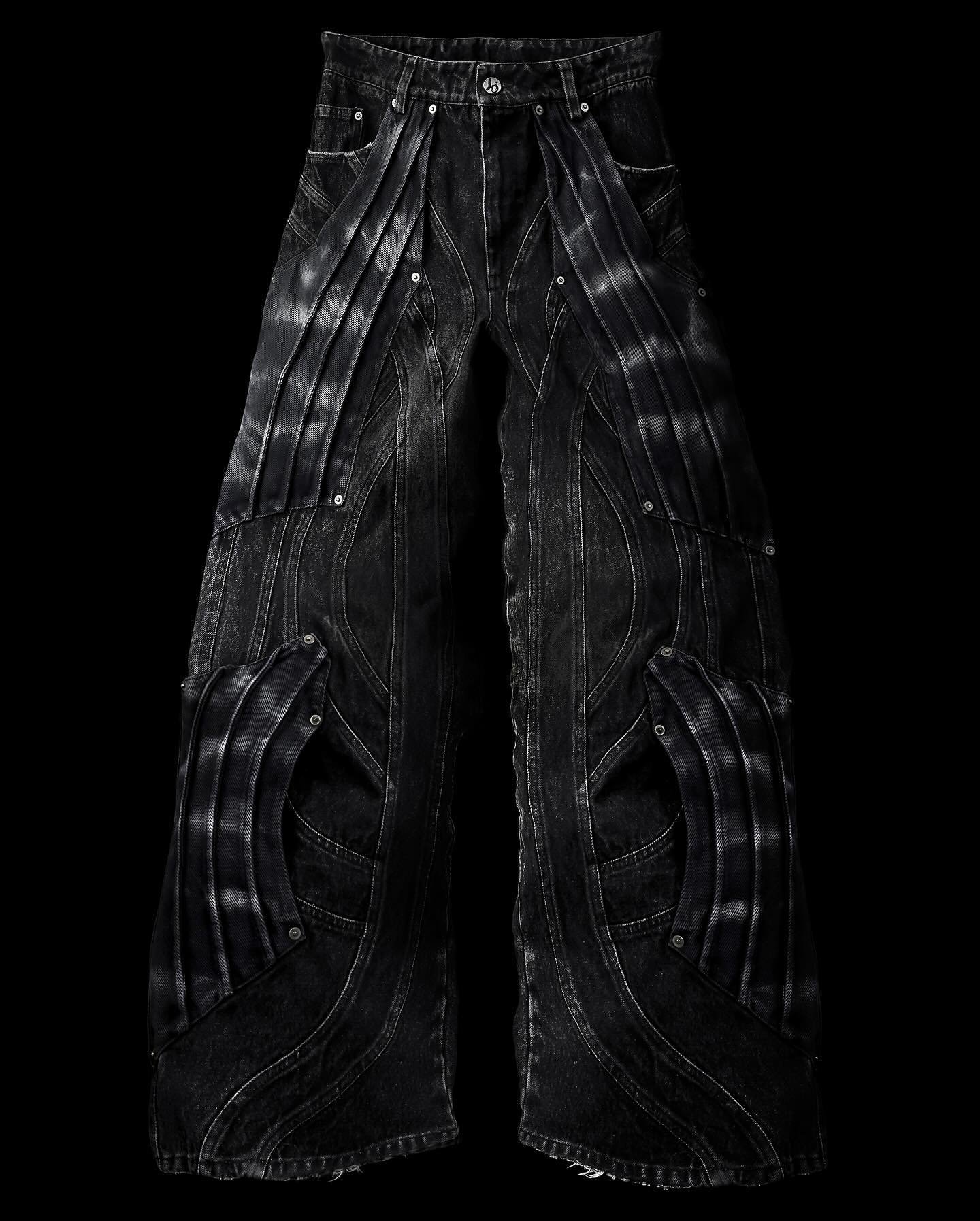 Style the Circuit Layered Pants with an oversized hoodie or structured jacket to highlight their layered design. Pair with chunky sneakers or boots for a bold streetwear edge. Stick to monochrome tones like black, grey, or white for a clean, futuristic look. Add accessories like a crossbody bag or cap to elevate the outfit. For a sharper fit, combine with a fitted tee and minimal layers, letting the pants stand out with BadsonJeans aesthetic.